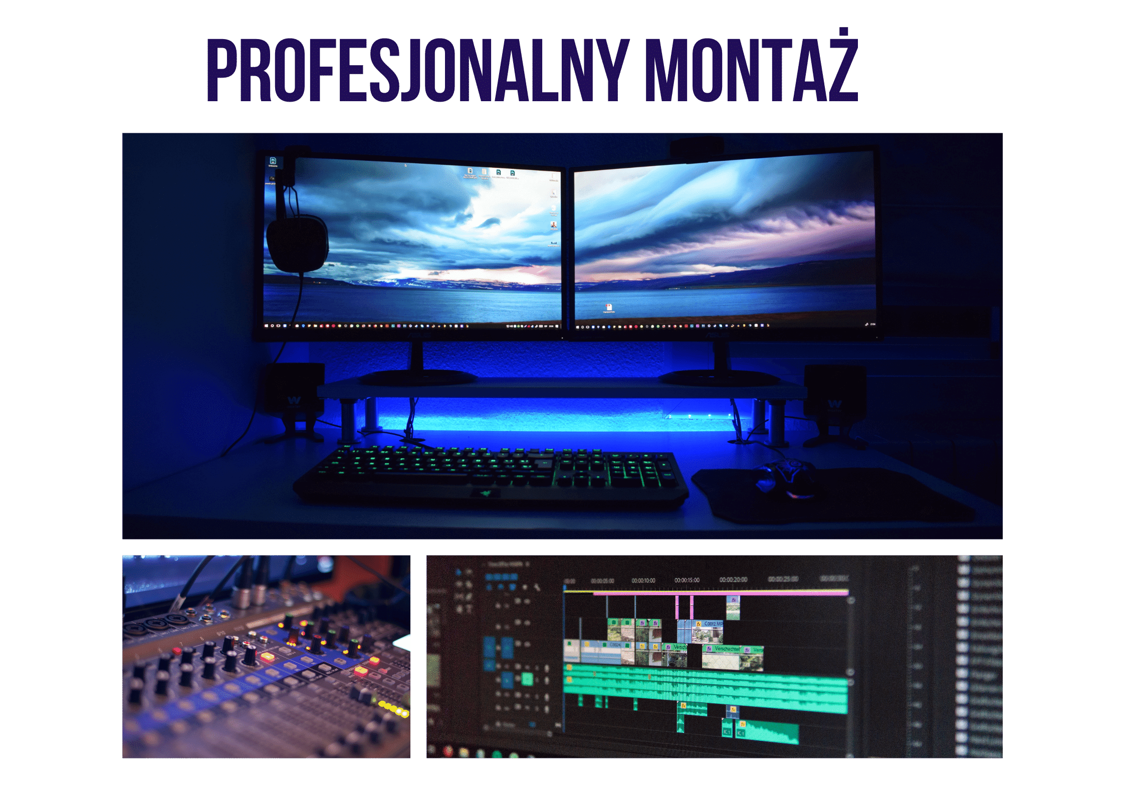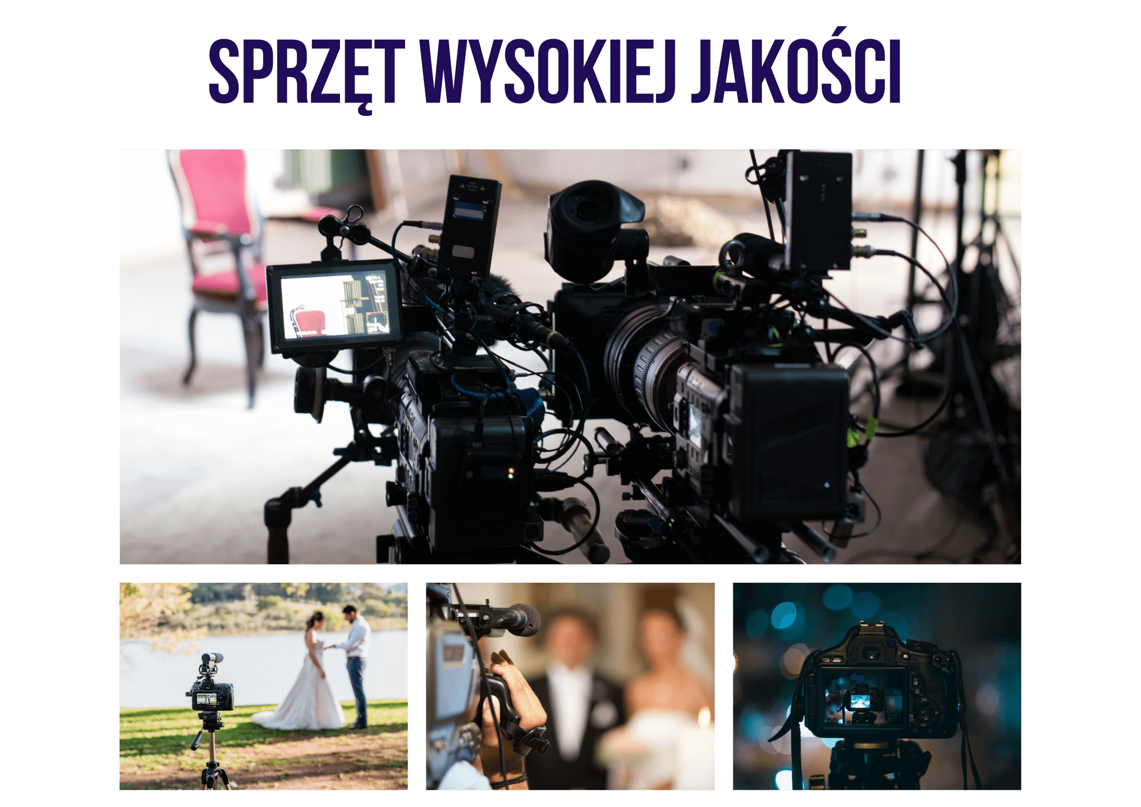 W naszej pracy nie ma miejsca na błędy! Przed realizacją każdego projektu sprzęt jest gruntowanie przetestowany oraz przygotowany do wielogodzinnej pracy. Rejestratory dźwięku pochodzą z najwyższej półki, aby zapewnić czysty dźwięk zarówno z nagrań w plenerze, ślubu, jak i zabawy weselnej. Praca nawet w najtrudniejszych warunkach nie stanowi dla nas problemu dzięki zastosowaniu odpowiednio jasnych obiektywów. Z tak przygotowaną ekipą filmową, każdy projekt kończy się sukcesem! Montaż materiału wideo wykonujemy na wysokiej jakości sprzęcie w programie Adobe Premiere Pro. Licencjonowana, podniosła oraz odpowiednio dobrana muzyka leży po naszej stronie.